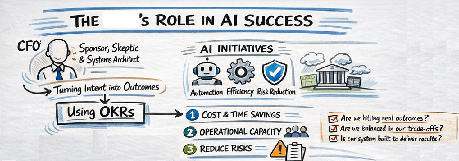 AI is not just a technology bet. It is a test of whether the organisation has a management system capable of turning intent into outcomes. OKRs give the CFO a practical way to connect strategy, investment, operational change, and financial results into one coherent story. Priorities will shift and tools will evolve, but this discipline is what allows learning and value to compound rather than reset.